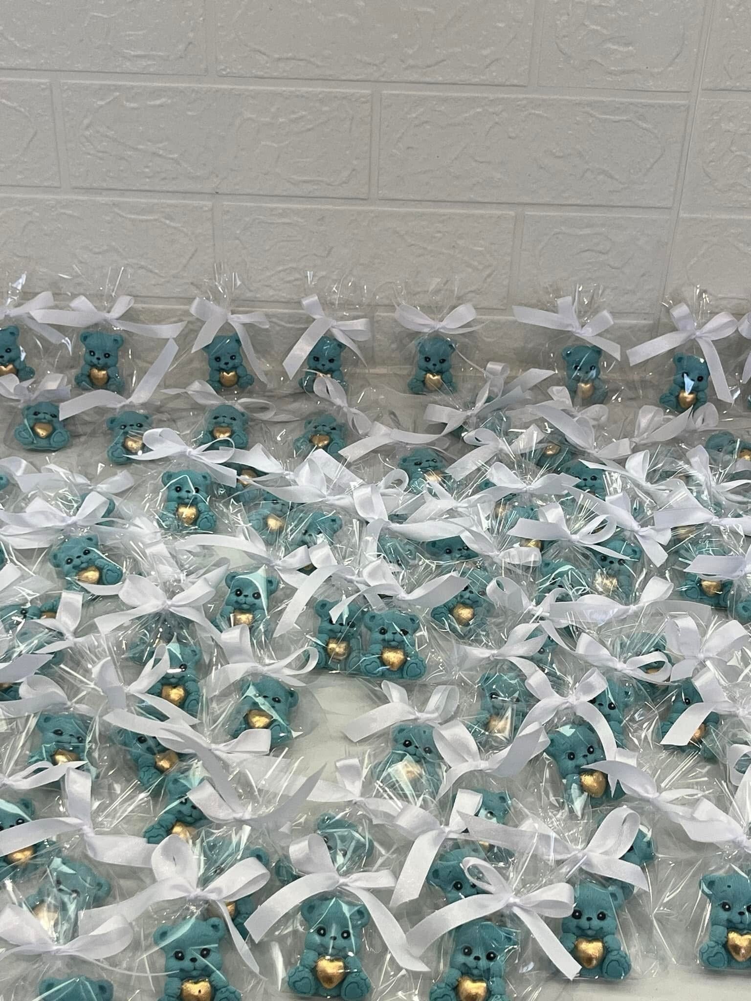 Uroczy czekoladowy miś to idealny pomysł na słodki komplement dla gości z okazji Chrztu Świętego, urodzin lub innej wyjątkowej uroczystości. Każda figurka została wykonana ręcznie z wysokiej jakości czekolady, z dbałością o najmniejsze detale.