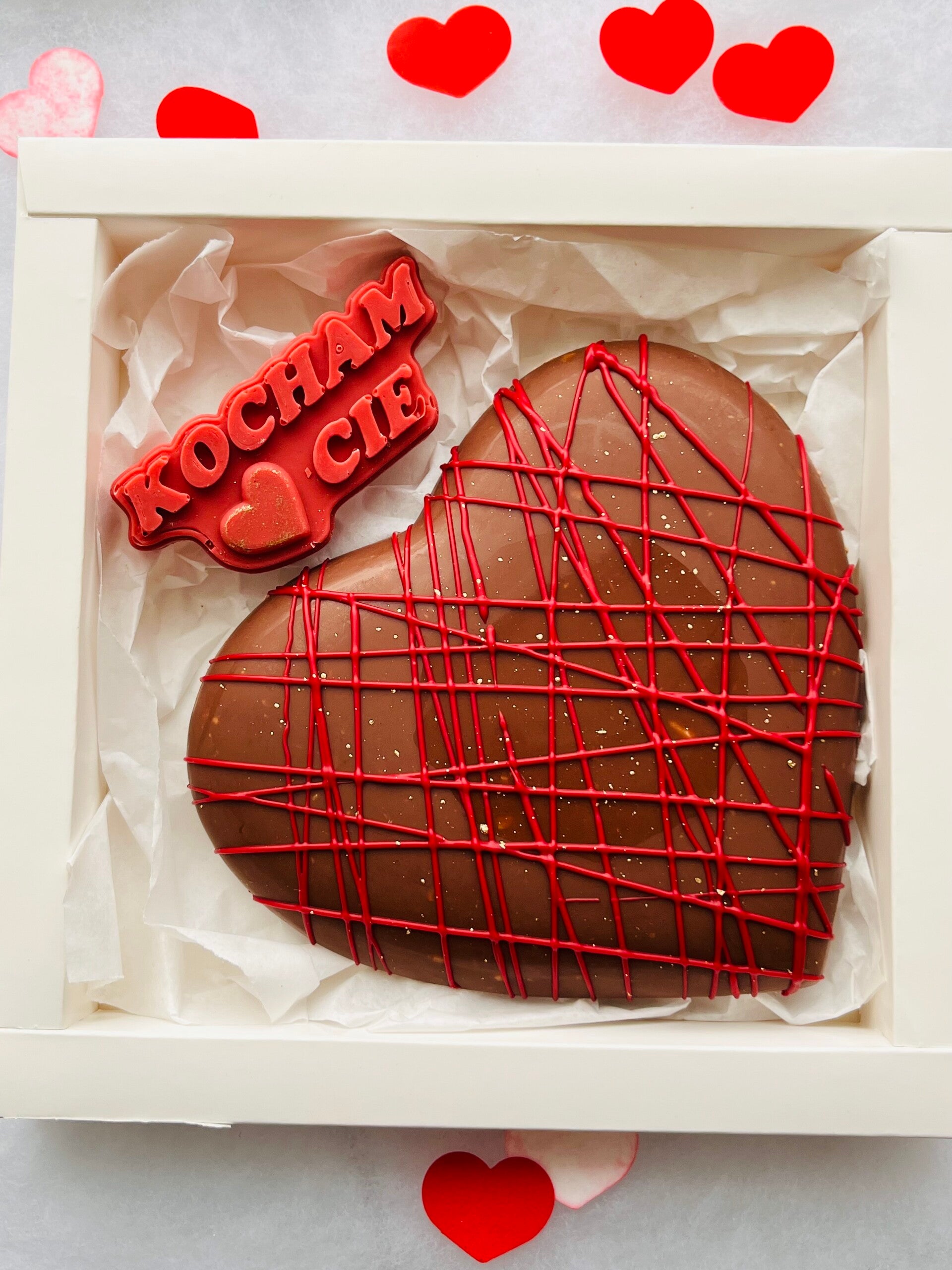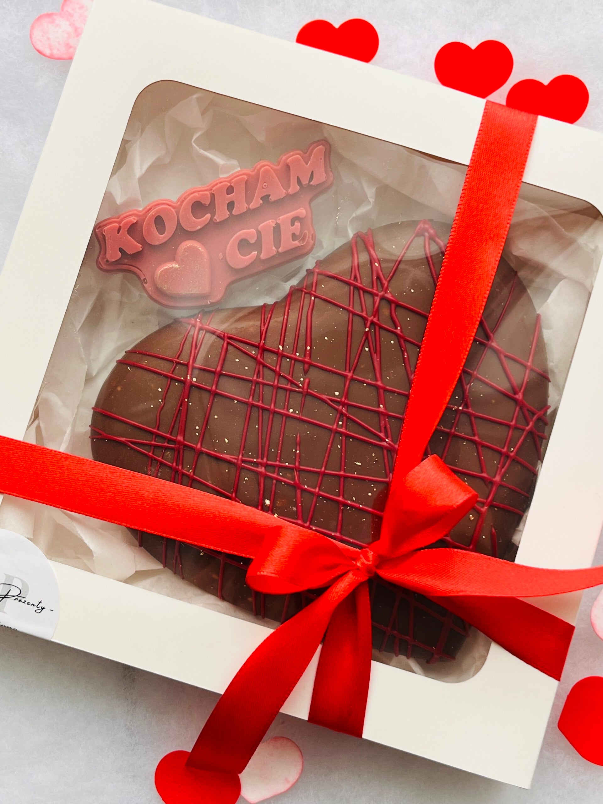 Czekoladowe serce z mlecznej, belgijskiej czekolady z kawałkami orzecha laskowego