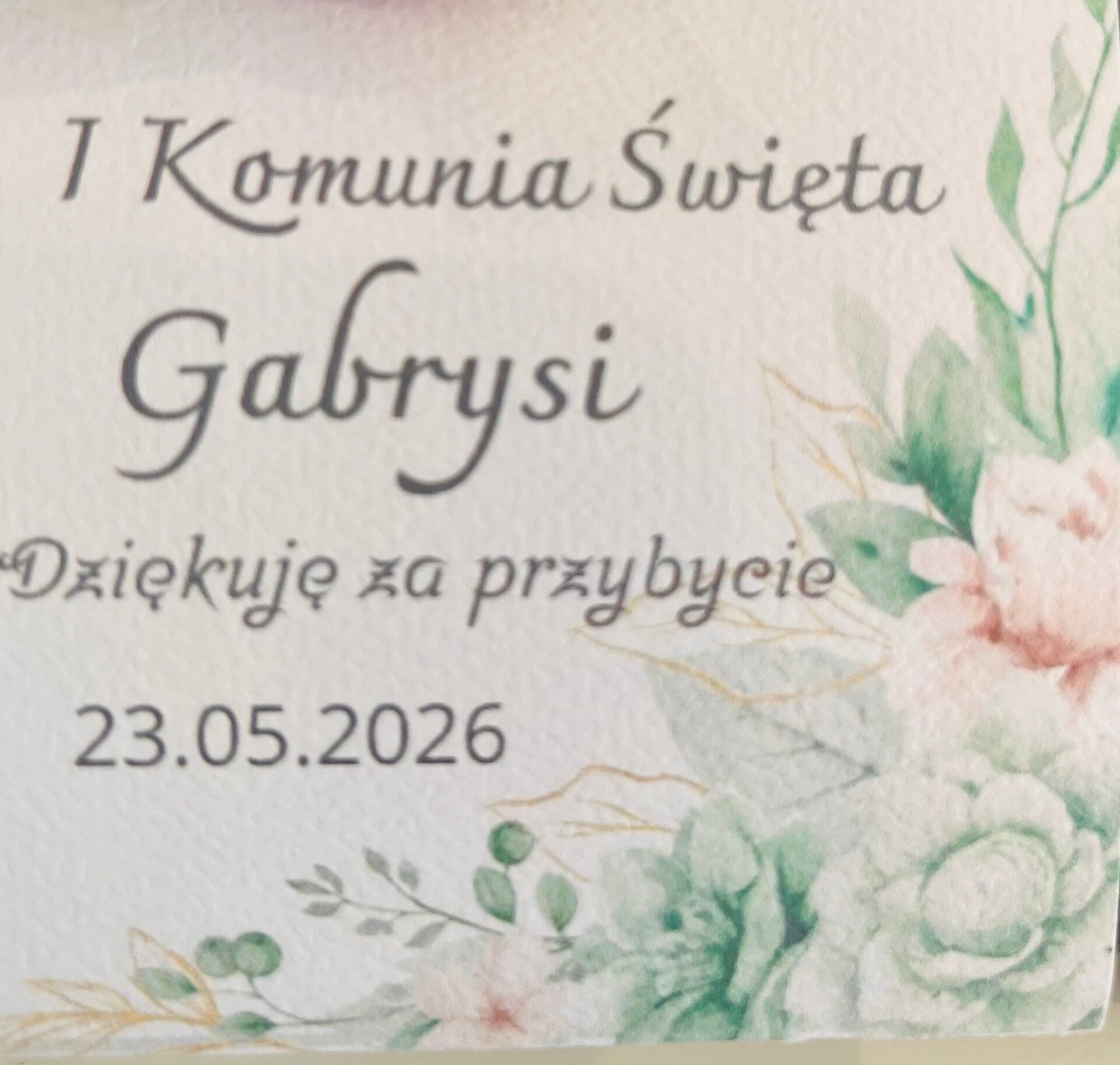 Eleganckie, personalizowane czekoladki to wyjątkowy upominek dla gości z okazji I Komunii Świętej, Chrztu, urodzin lub innej uroczystości rodzinnej. Każda czekoladka posiada ozdobną owijkę z delikatnym motywem kwiatowym oraz imieniem dziecka, datą i krótkim podziękowaniem.