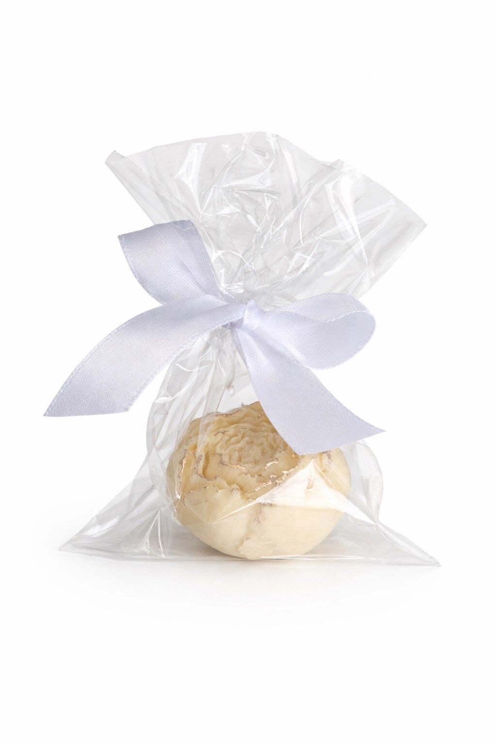Wewnątrz znajduje się czekoladowa piwonia zapakowana w przezroczystą folię, dzięki czemu prezent jest gotowy do wręczenia.